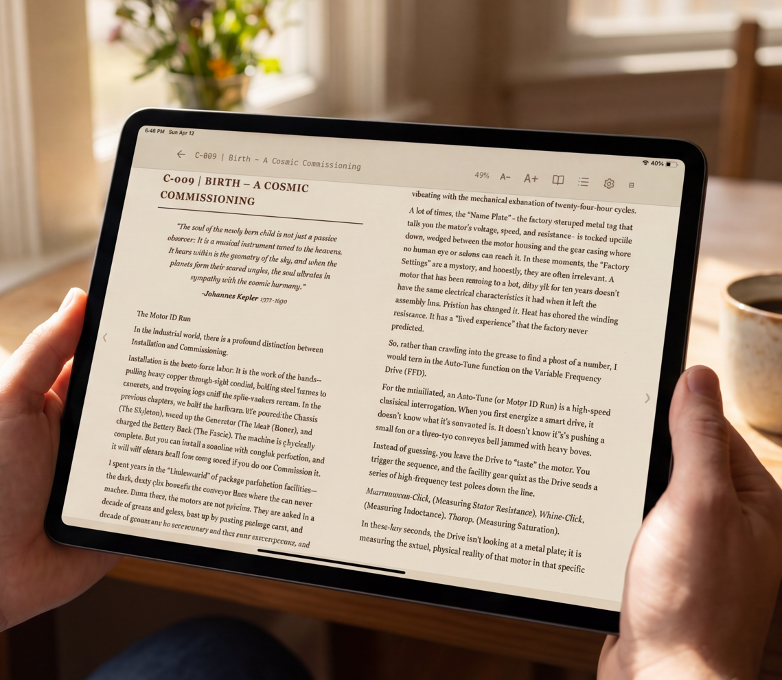 This framework wasn't built in a classroom. It was assembled from the inside of conduit — from years of tracing invisible forces through complex systems, learning to read load, resistance, and current before a single breaker trips. Electric Astrology applies that same diagnostic intelligence to the birth chart, treating the solar system as the living electromagnetic circuit it actually is.